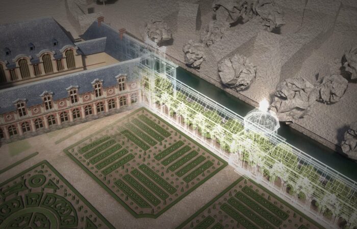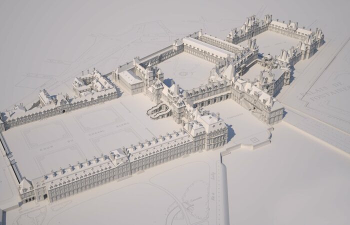 Aristeas et le château de Fontainebleau sont en coproduction depuis 2011 autour de la reconstitution virtuelle du château. Pas moins de 9 périodes du bâtiment et des jardins sont en effet modélisées pour donner à voir l’évolution du domaine à travers les siècles.