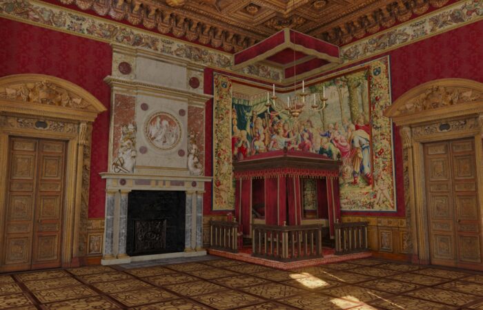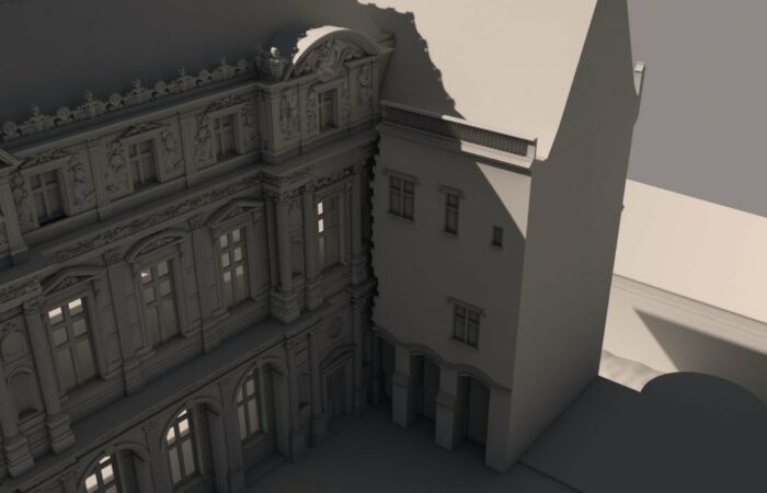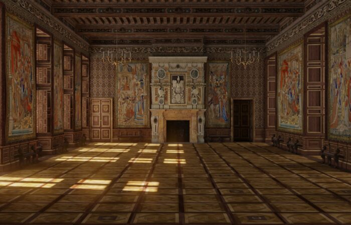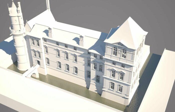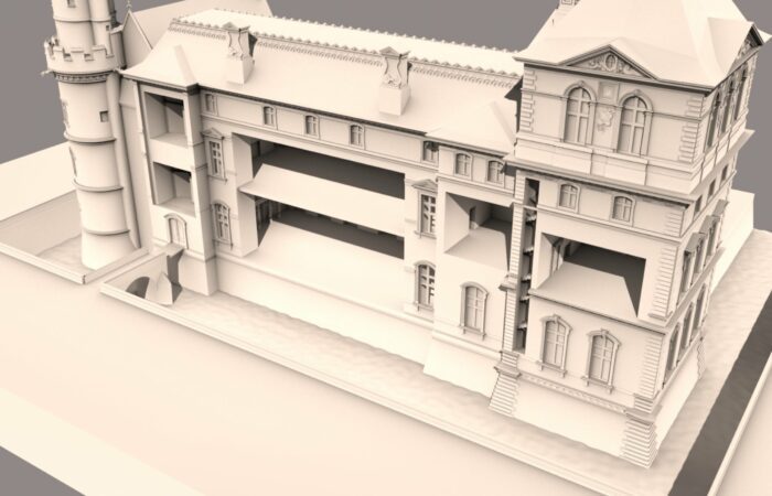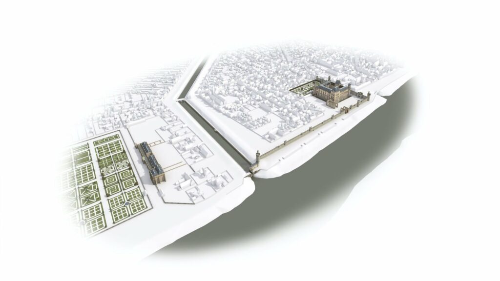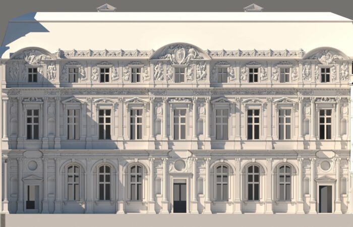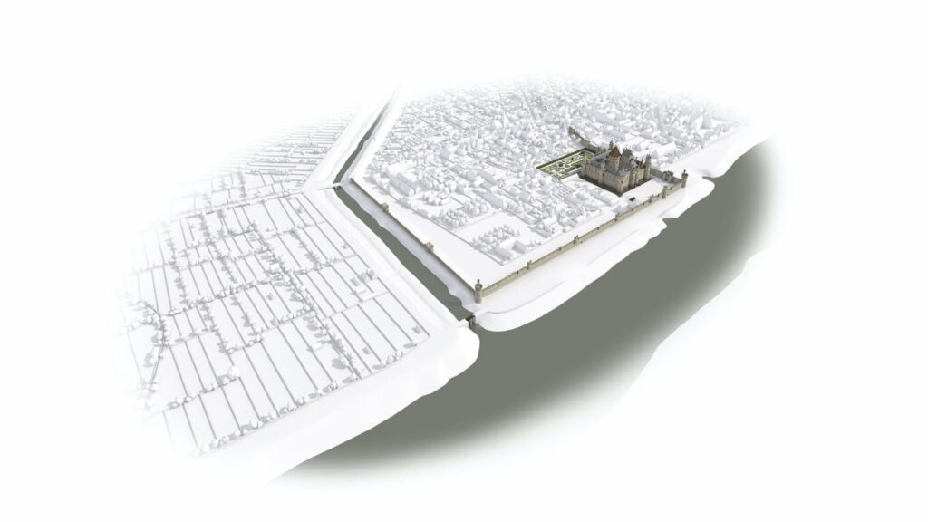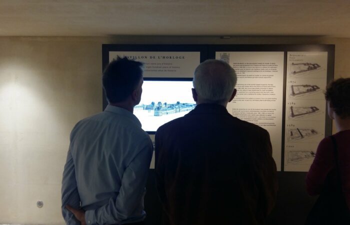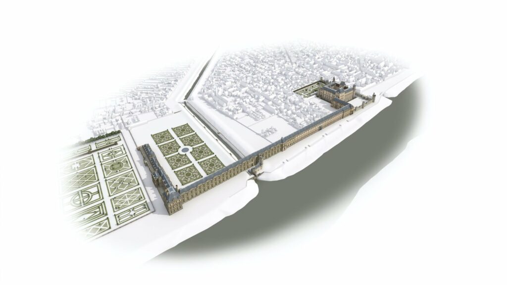 En 2016, le musée du Louvre initie une coproduction avec Aristeas autour de la modélisation 3D de 9 états du palais à travers les âges. Déjà mené par Aristeas pour le compte de France Télévisions puis de Martange production, cette modélisation 3D fait alors l’objet d’un important travail d’enrichissement, en partenariat avec les équipes du Service histoire du Musée du Louvre.