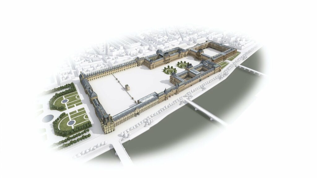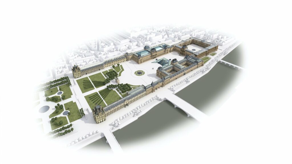 Depuis 2017, l’image 3D du Louvre actuel d’Aristeas est celle du plan-guide du musée éditée à des millions d’exemplaires.