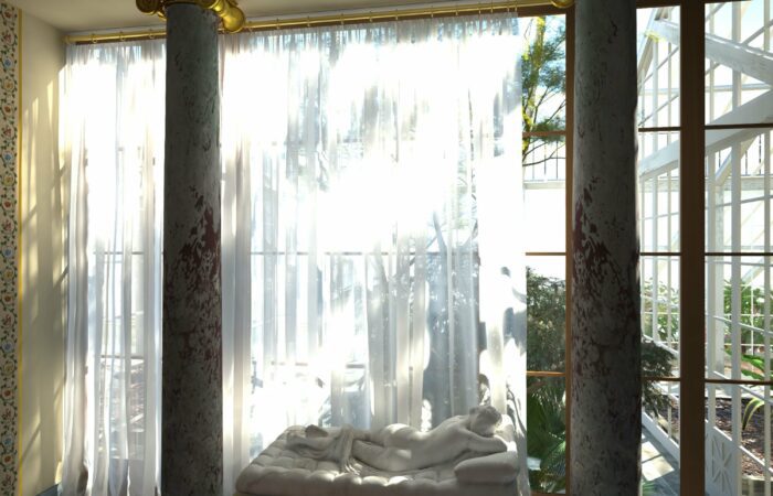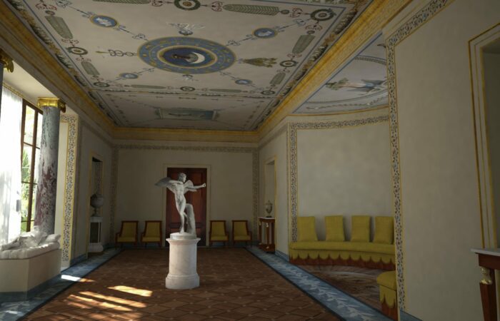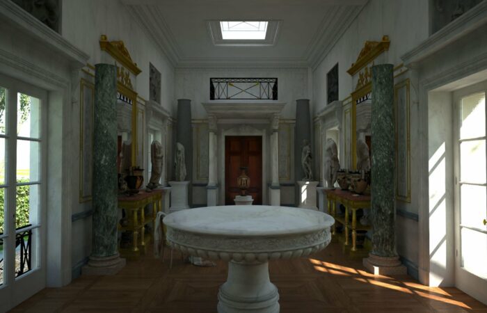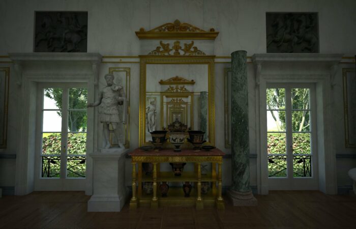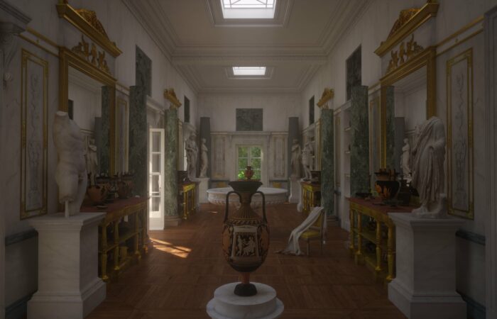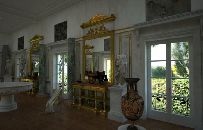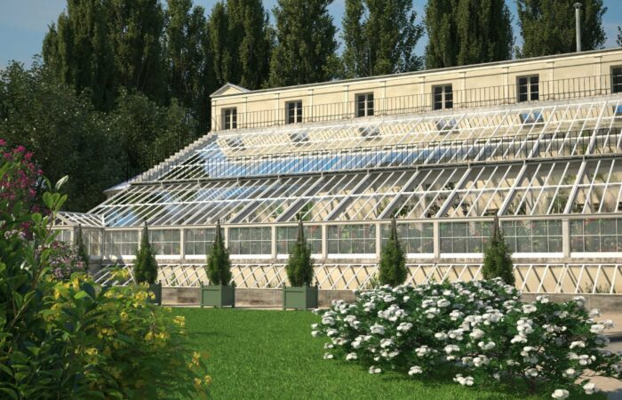 La reconstitution 3D de la serre permet la réalisation d’un film offrant une véritable visite virtuelle des lieux. La déambulation débute dans les jardins de la Petite Malmaison à laquelle est accolée la serre aujourd’hui disparue ; elle se poursuit à l’intérieur de la serre proprement dite : vestibule, serre chaude et serre tempérée.