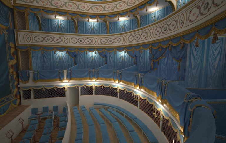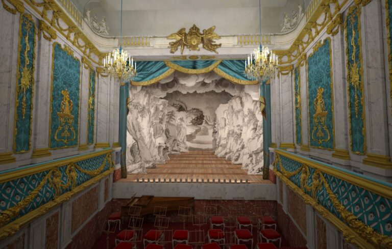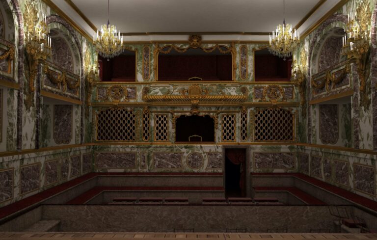 En lien avec la conservation du château, Aristeas propose la modélisation 3D de l’architecture de six théâtres baroques exceptionnels aujourd’hui disparus : Cour des princes, théâtre de l’aile neuve, théâtre du cabinet, salle du manège, transformations de l’opéra royal, maisons de bois ; ainsi que de deux « divertissements » : la flotille et le manège chinois de Marie-Antoinette.